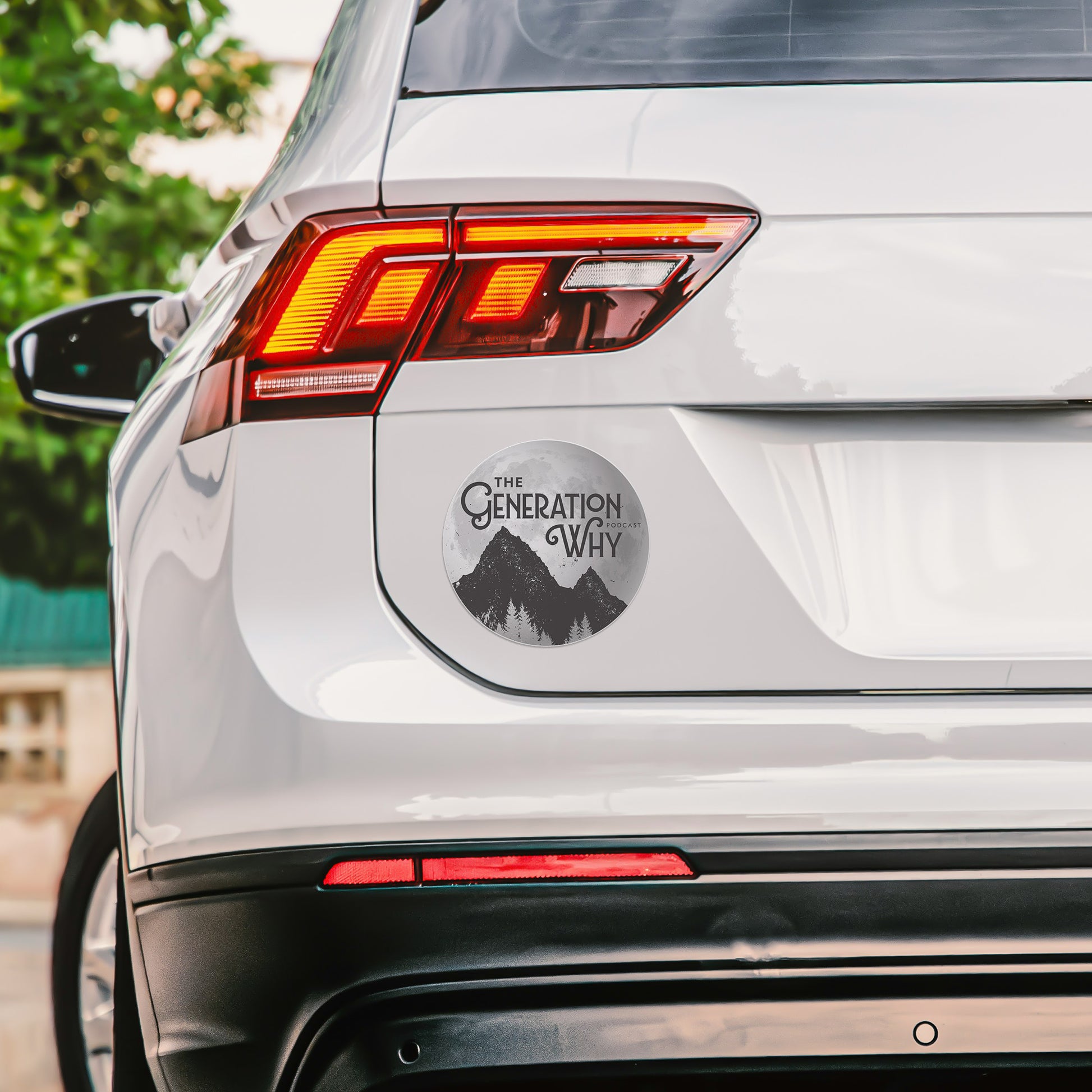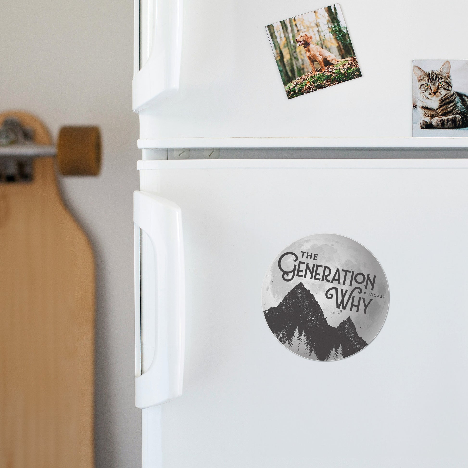Stick this 5 inch round magnet wherever you want to see the moon behind the mountains! Oh, and tell people you listen to Generation Why!